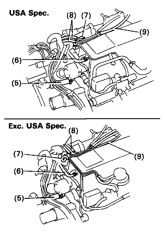 (9) Vacuum hose (from charcoal canister) to vacuum pipe.