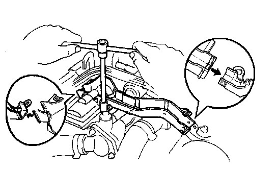 (b) Install the bolt holding the water by-pass pipe to the LH engine hanger.
