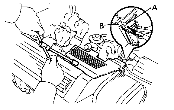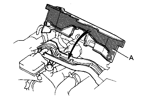 (b) Fit portion A of the timing belt cover, matching it with the lower high-tension cord cover.