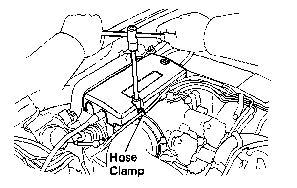 Install the throttle body cover and hose clamp with the two bolts and cap nut.