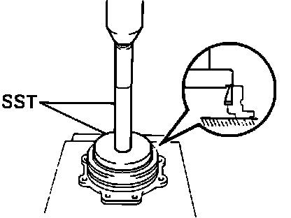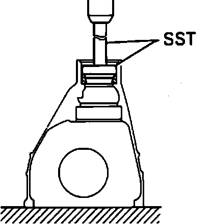 22. Using a press and special service tool No. 09316-60010 or equivalent, press in pinion oil seal until its end is flush with surface of differential carrier.