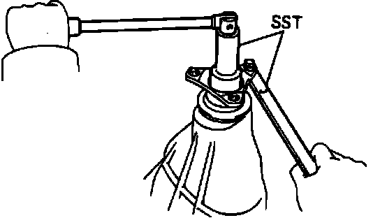 b. Using a torque wrench and special service tool No. 09229-55010 or equivalent, check preload. Preload should be 10.8-16.0 inch lbs. on new bearings or 4.3-6.9 inch lbs. on used bearings.