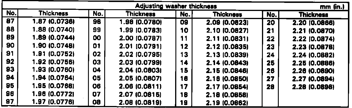 Fig. 38 Adjusting Washer Thickness Chart: