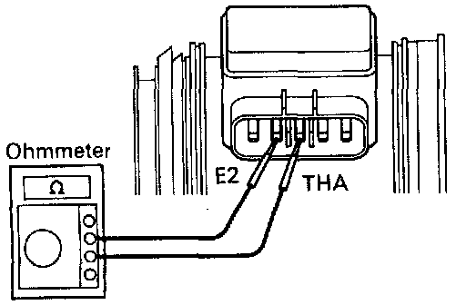 - Using an ohmmeter, measure the resistance between terminals THA and E2.