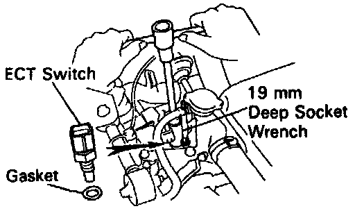 - Using a 19 mm deep socket wrench. remove the ECT sensor and gasket.