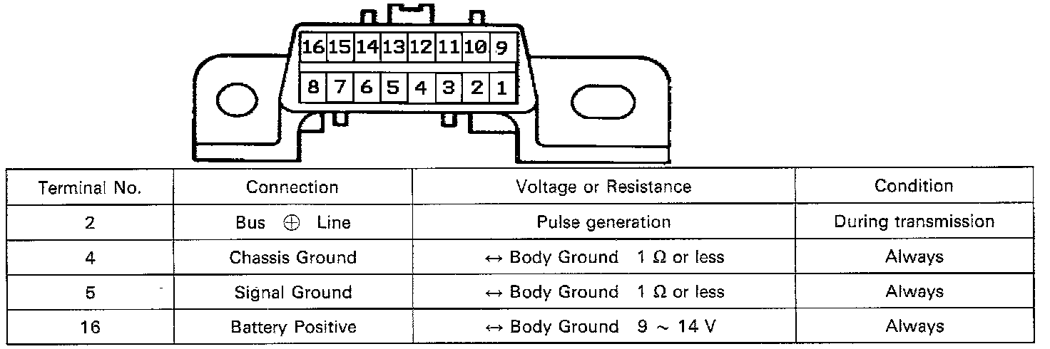 NOTICE: Never make a mistake with the terminal connection position as this will cause a malfunction. Refer to the respective system for the inspection method.