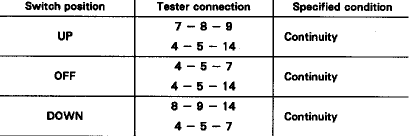 If continuity is not as specified, relace the master switch.