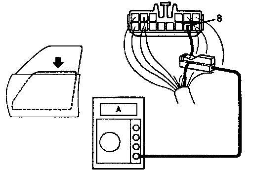 (b) Attach a current-measuring probe to terminal 8 of the wire harness.