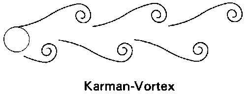 As shown in the figure, when a pillar (Vortex generating body) is placed in the path of a uniform flow, vortices called Karman-Vortex are generated downstream of the object. Using this principle, a vortex generator is placed inside the volume air flow meter. By measuring the frequency of the vortices generated, the Engine Control Module (ECM) can determine the volume of air flowing through the volume air flow meter. The vortices are detected by their exerting pressure on thin metal foil (mirror) surfaces and a light emitting element and light receptor (LED and photo transistor) positioned opposite the mirror which optically senses the vibrations in the mirror. The ECM uses these signals mainly for calculation of the basic injection volume and the basic ignition advance angle.