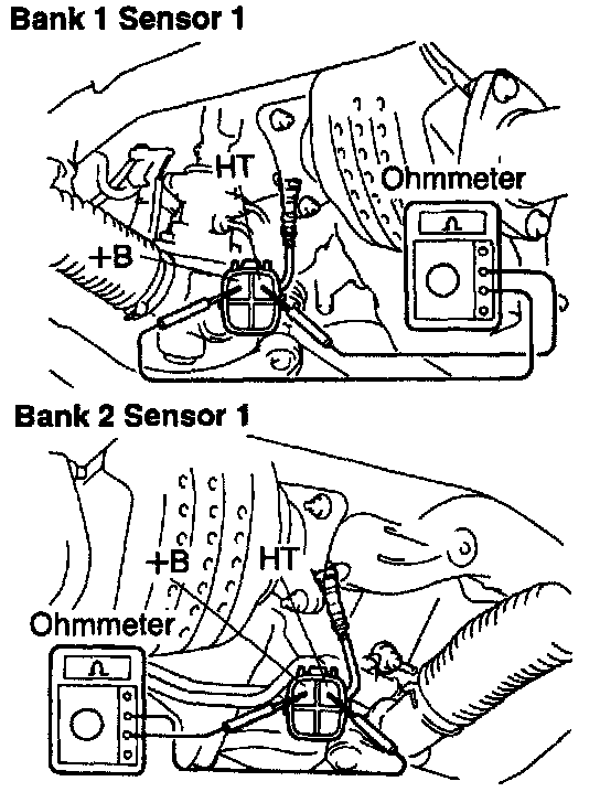 HEATED OXYGEN SENSORS - HEATER INSPECTION1. INSPECT HEATER RESISTANCE OF HEATED OXYGEN SENSORS (BANK 1, 2 SENSOR 1).
