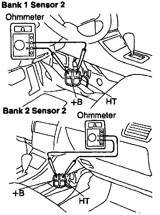 2. INSPECT HEATER RESISTANCE OF HEATED OXYGEN SENSORS (BANK 1, 2 SENSOR 2).