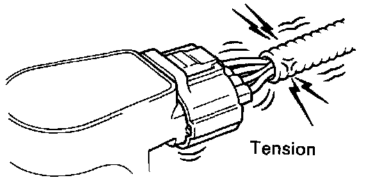 When inserting tester probes into a connector, insert them from the rear of the connector. When necessary, use mini test leads. For water resistant connectors which cannot be accessed from behind, take good care not to deform the connector terminals.