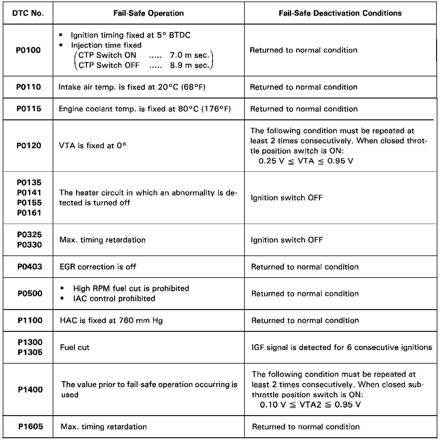 If any of the following codes is recorded, the ECM enters fail-safe mode.