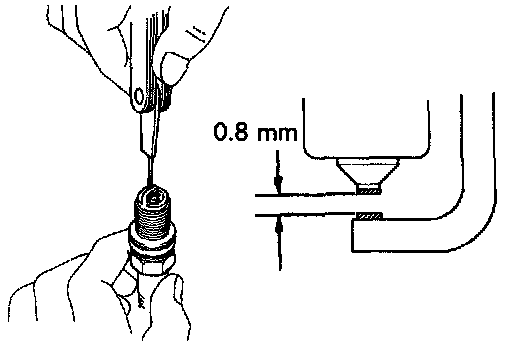 Correct electrode gap for new spark plug: 0.8 mm (0.031 in.)