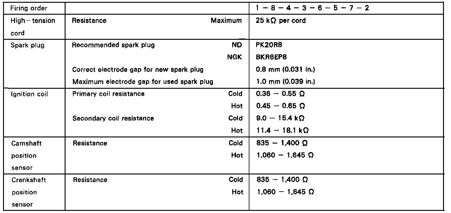 Ignition System Service Data: