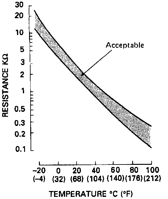 - If the resistance is not as specified, replace the ECT sensor.