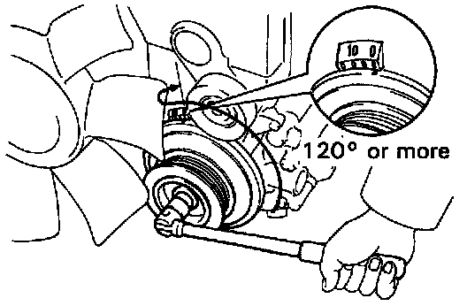 - Turn the crankshaft again approximately 10° to 40° clockwise so that the timing belt cover TDC mark and the crankshaft pulley TDC mark are aligned.