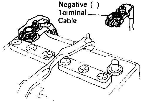 1. DISCONNECT NEGATIVE (-) TERMINAL CABLE FROM BATTERY.
