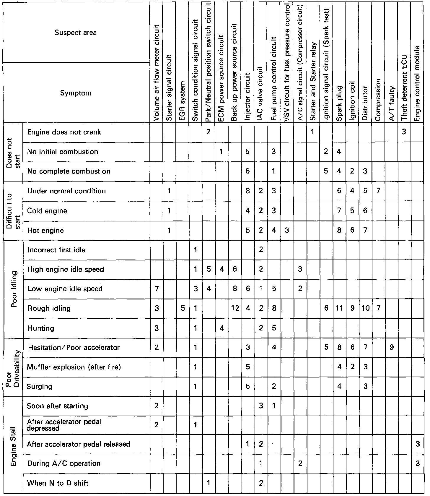 When the malfunction code is not confirmed in the diagnostic trouble code check and the problem still can not be confirmed in the basic inspection, then proceed to this step and perform troubleshooting according to the numbered order given in the image above.