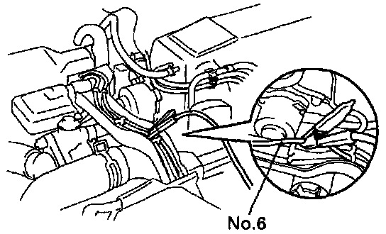 - Connect the tester probe of a timing light to the high-tension cord for No.6 cylinder.
