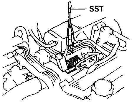 - Using SST 09843-18020, connect terminals TE1 and E1 of the DLC1.
