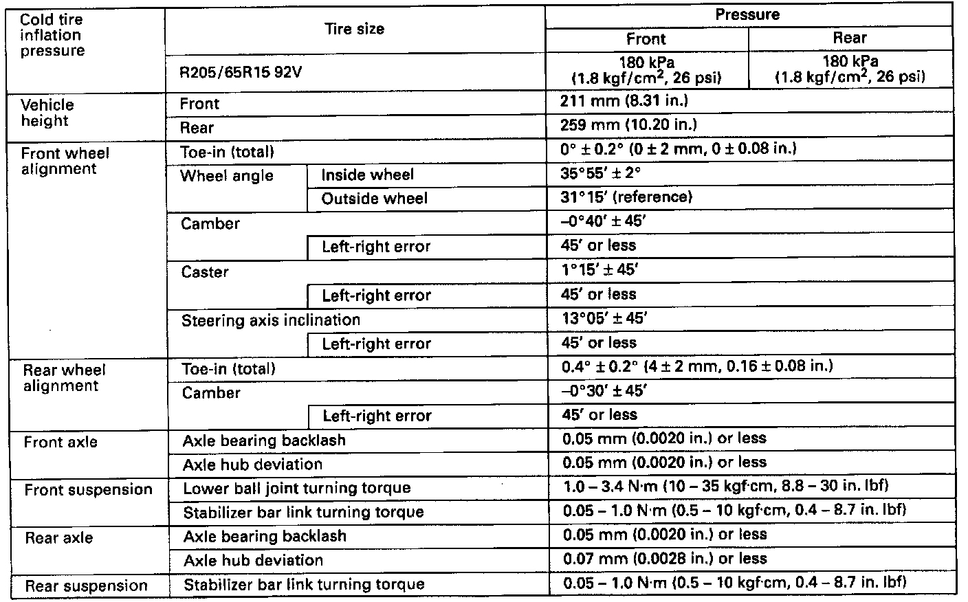 Alignment: Specifications