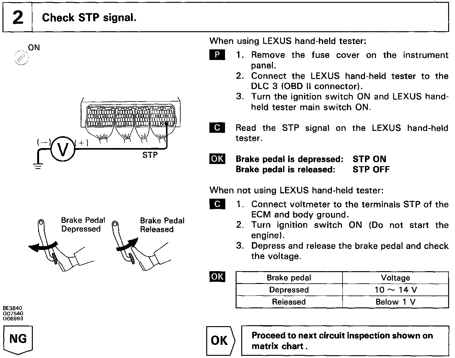 When the brake pedal is operated, this switch sends a signal to ECM. Then the ECM cancels operation of the lock-up clutch while braking is in progress.