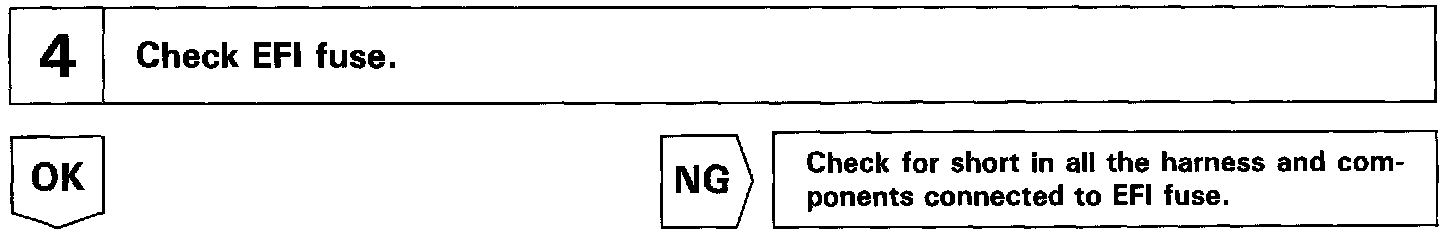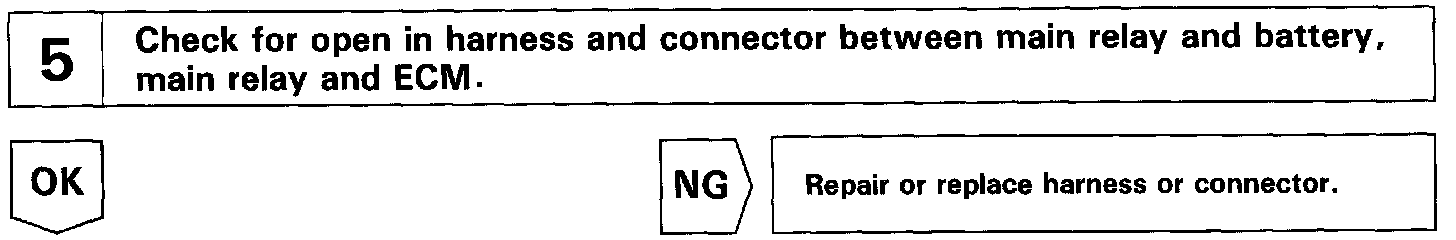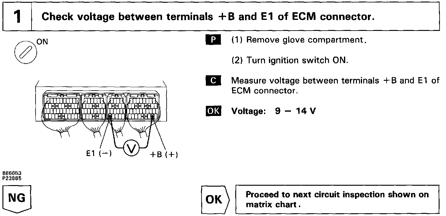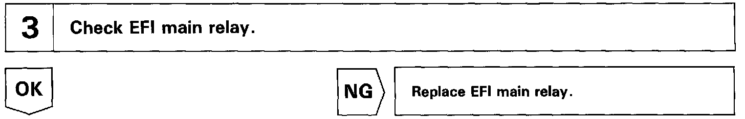 When the ignition switch is turned ON, battery positive voltage is applied to the coil, closing the contacts of the EFI main relay and supplying power to the terminal +B of the ECM.