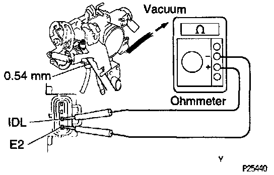 - Connect the test probe of an ohmmeter to the terminals IDL and E2 of the sensor.