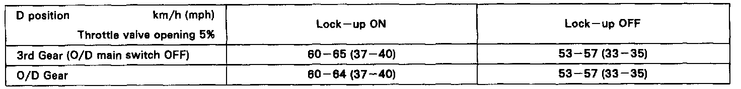 - Shift-up to O/D will not occur when the engine coolant temperature is below 60°C (140°F) and the vehicle speed is below 70 km/h (43 mph).