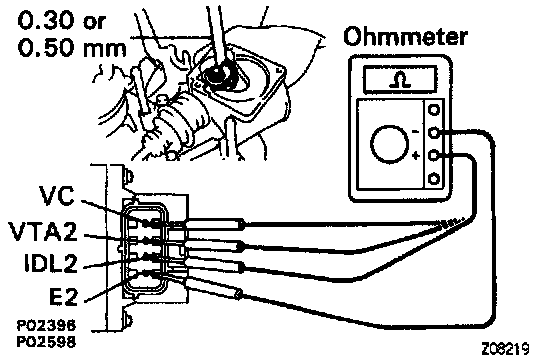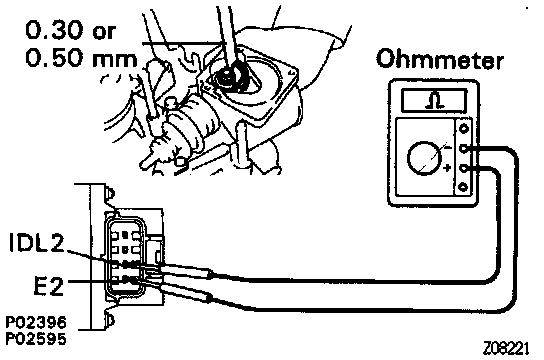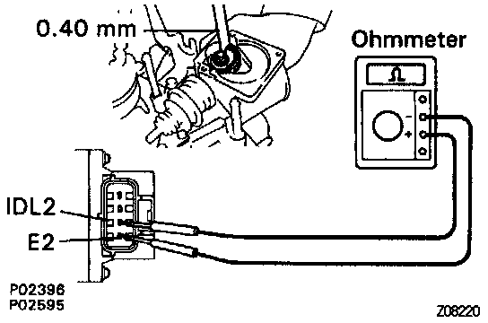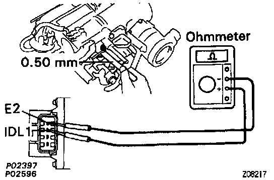 - Connect the test probe of an ohmmeter to the terminals IDL2 and E2 of the sensor.