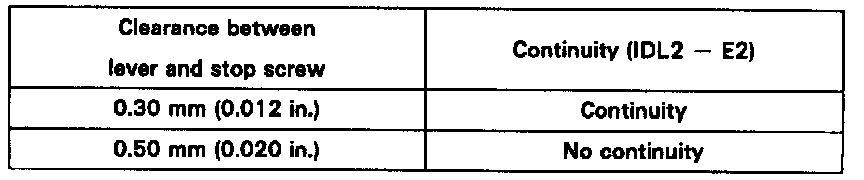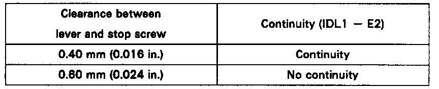 - Check that there is no clearance between the throttle stop screw and throttle lever when the throttle valve is fully closed.
