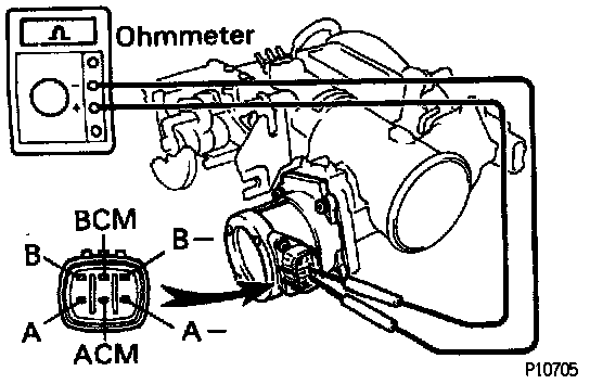 - Using an ohmmeter, measure the resistance between the terminals (ACM ~ A and A -, BCM ~ B and B-).