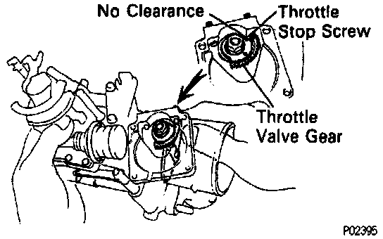 - Check that there is no clearance between the throttle stop screw and throttle valve gear when the sub- throttle valve is fully closed.