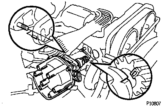 - Insert the distributor, aligning the protrusion of the flange with that of the stud bolt on the cylinder head.