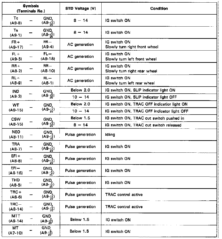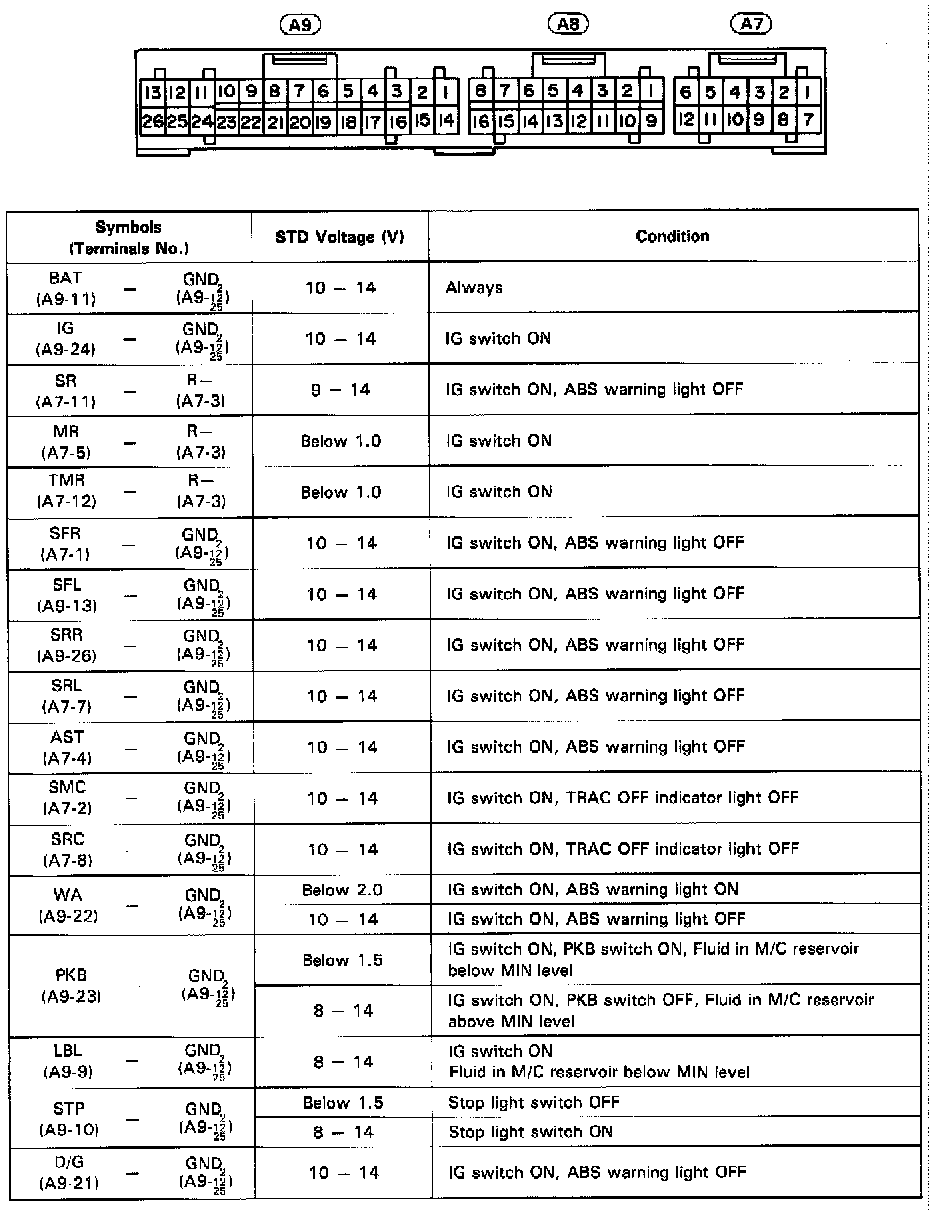 Fig. 35 ABS & TRAC ECU Terminal Identification & Values (Part 2 Of 2):