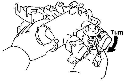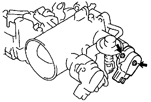 - Insert a 0.40 mm (0.016 in.) feeler gauge, between the throttle stop screw and stop lever.