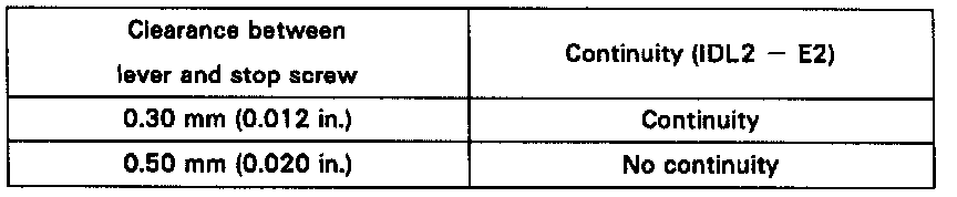 - Insert a 0.30 mm (0.012 in.) feeler gauge, between the throttle stop screw and throttle valve gear.