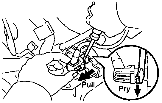 - Using a screwdriver, lift up the lock claw and disconnect the holder from the ignition coil.