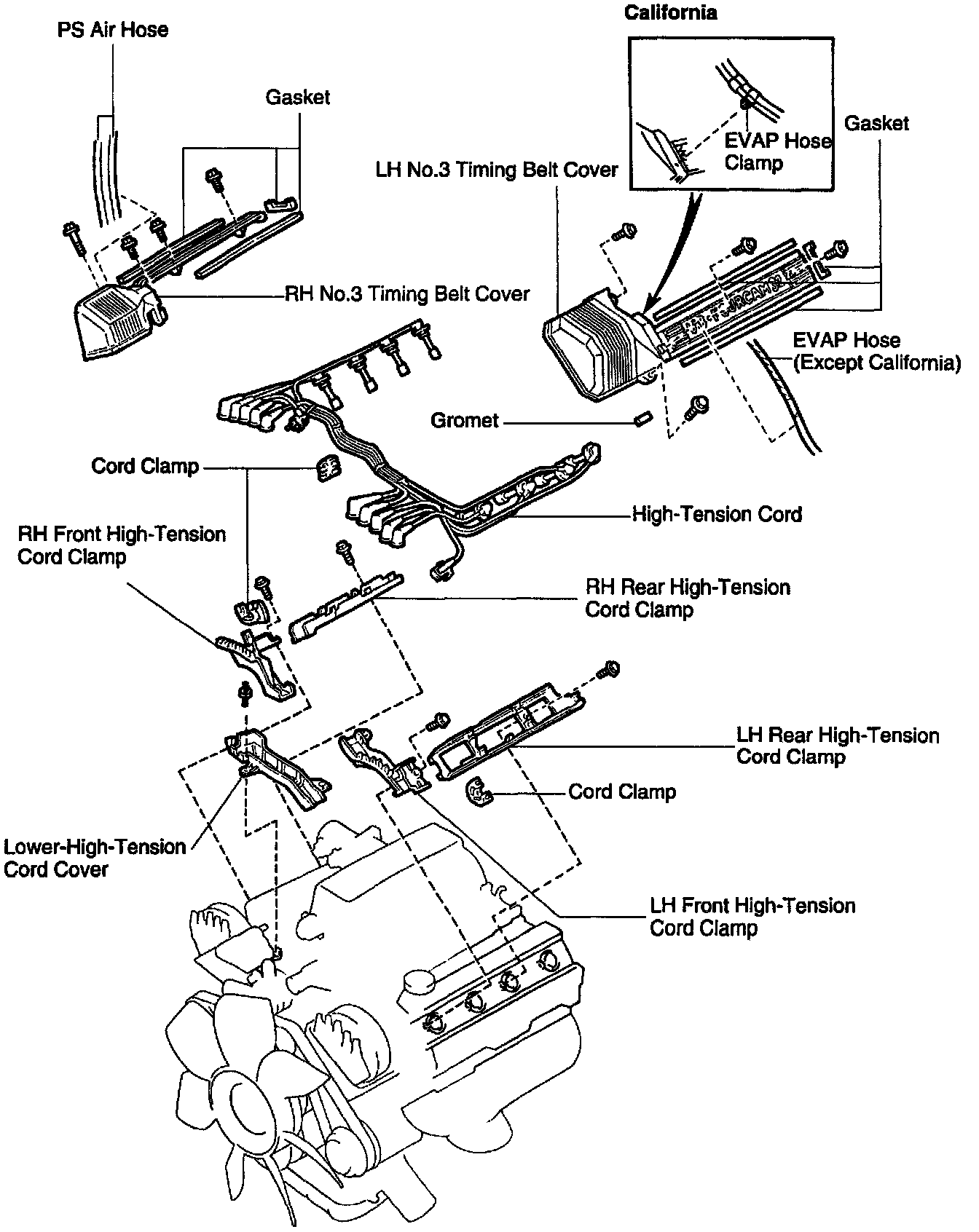 6. REMOVE LH HIGH-TENSION CORD CLAMPS.