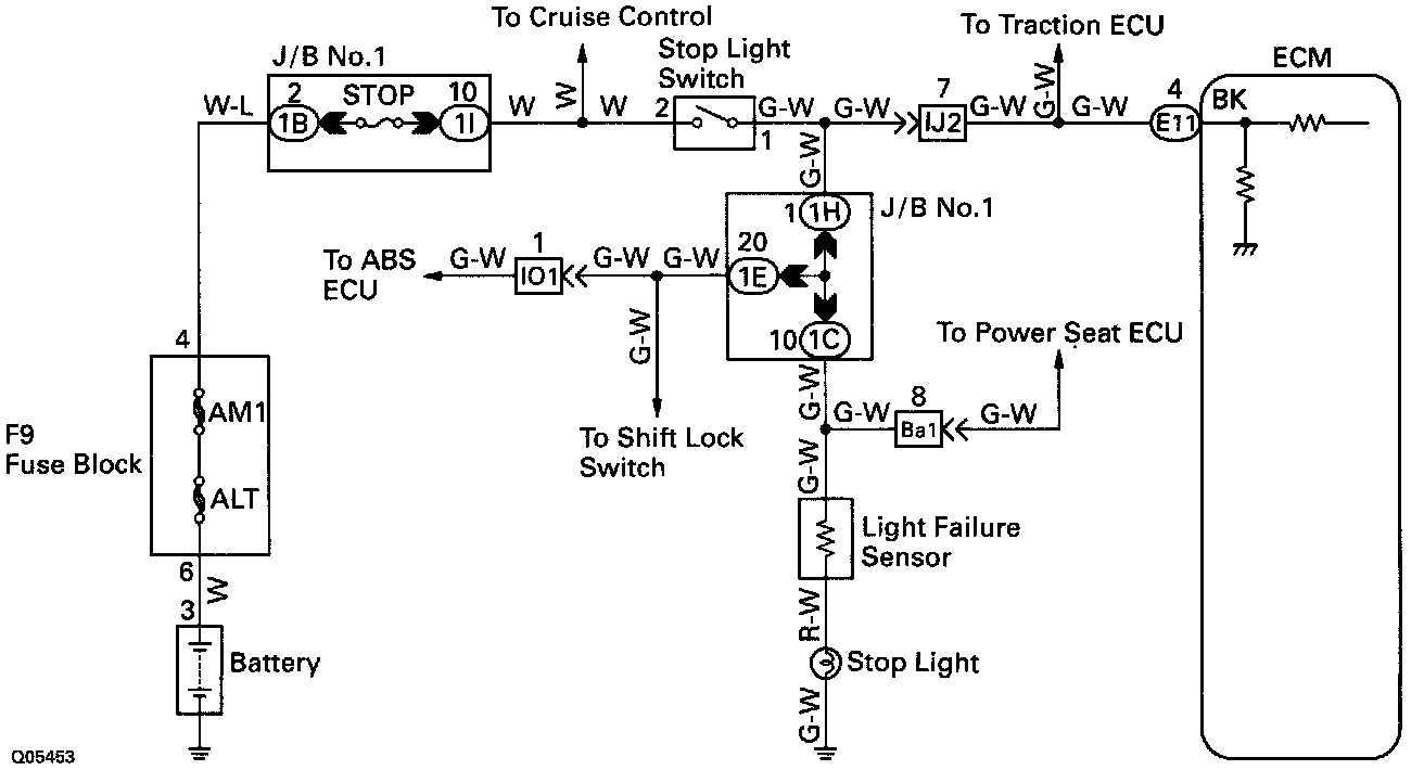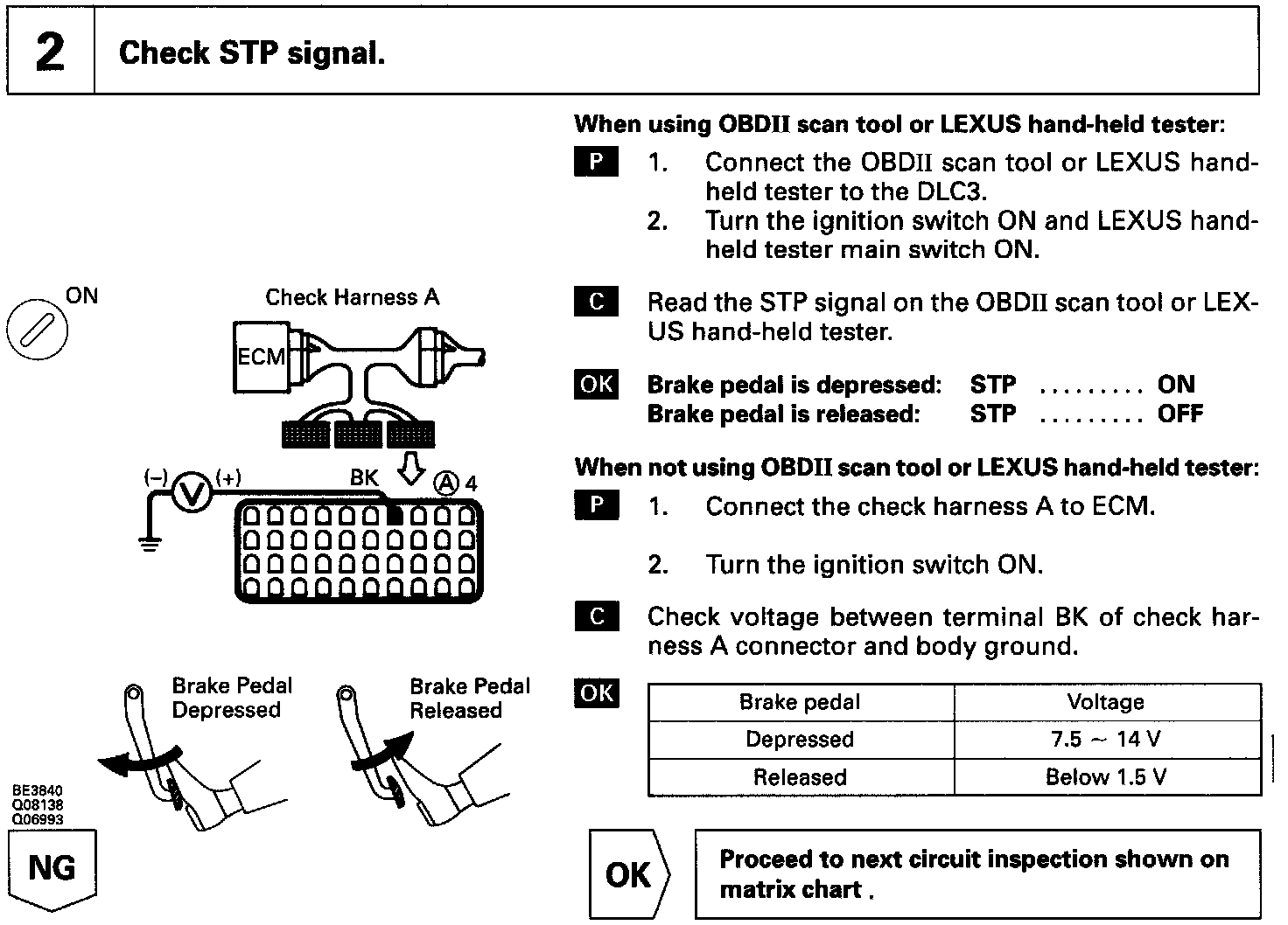 When the brake pedal is operated, this switch sends a signal to the ECM. Then the ECM cancels operation of the lock-up clutch while braking is in progress.