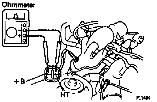 - Using an ohmmeter, measure the resistance between the terminals +B and HT.