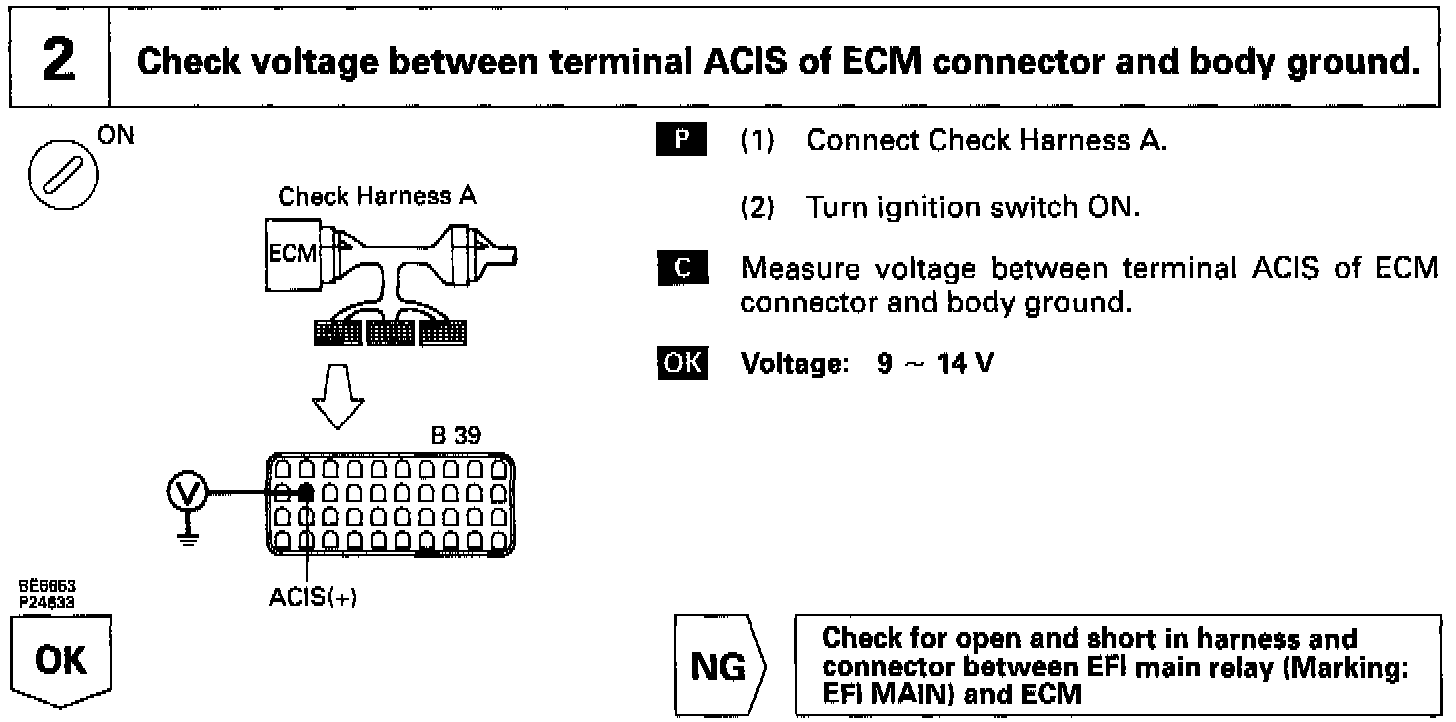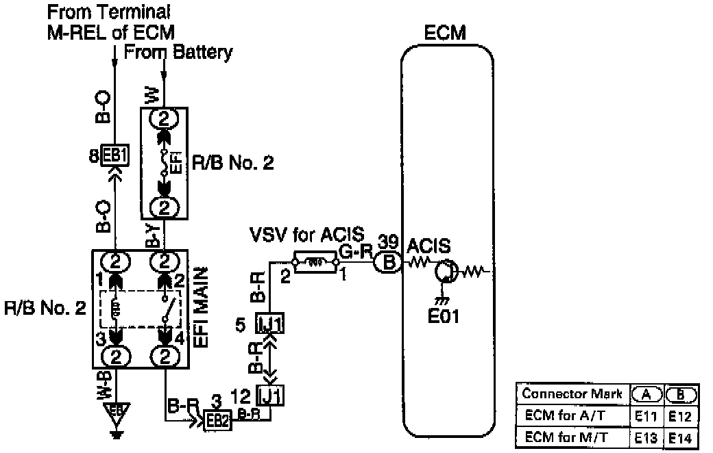 This circuit opens and closes the IACV (Intake Air Control Valve) in response to the engine load in order to increase the intake efficiency (ACIS: Acoustic Control Induction System).