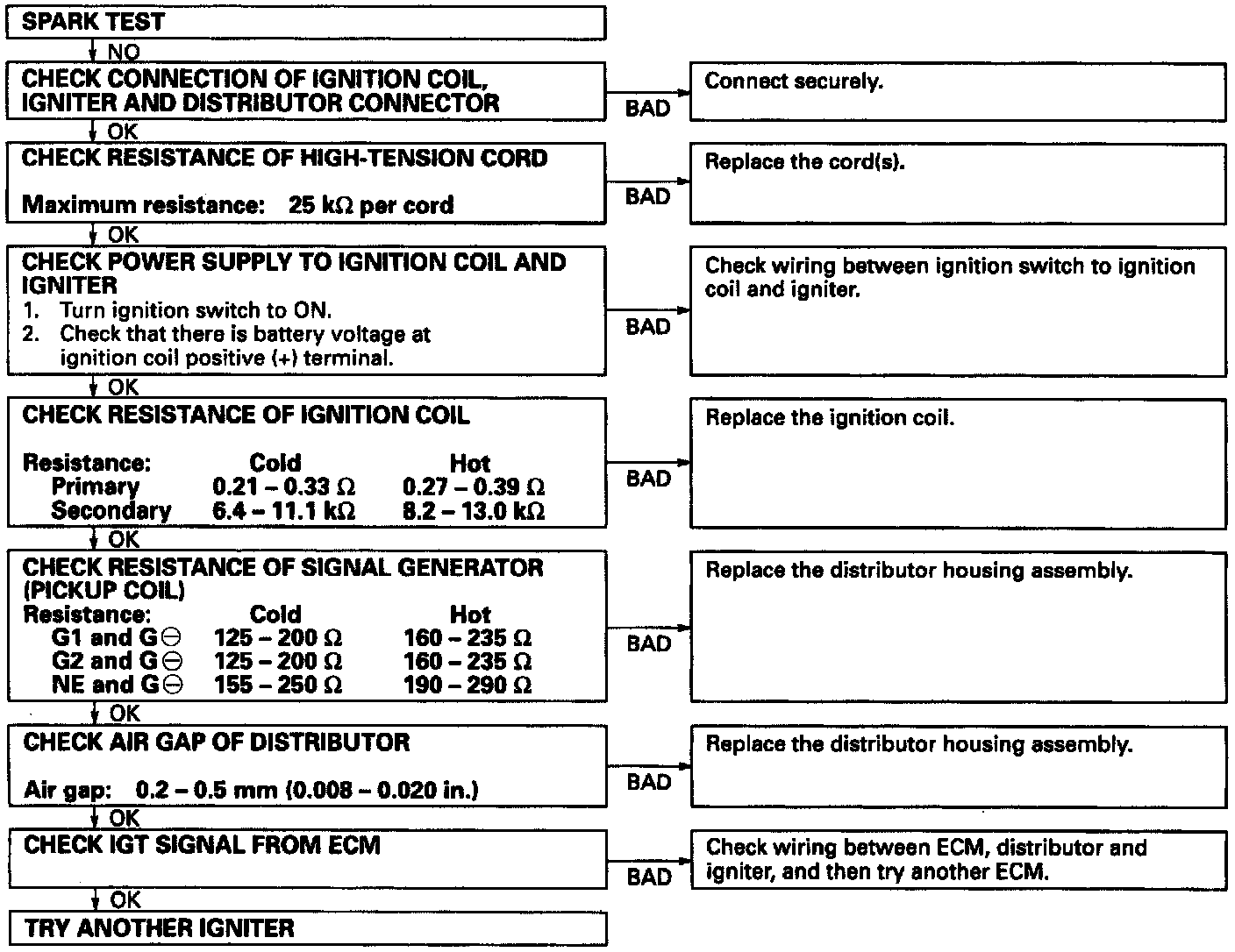 If a spark does not occur. do the test as follows: