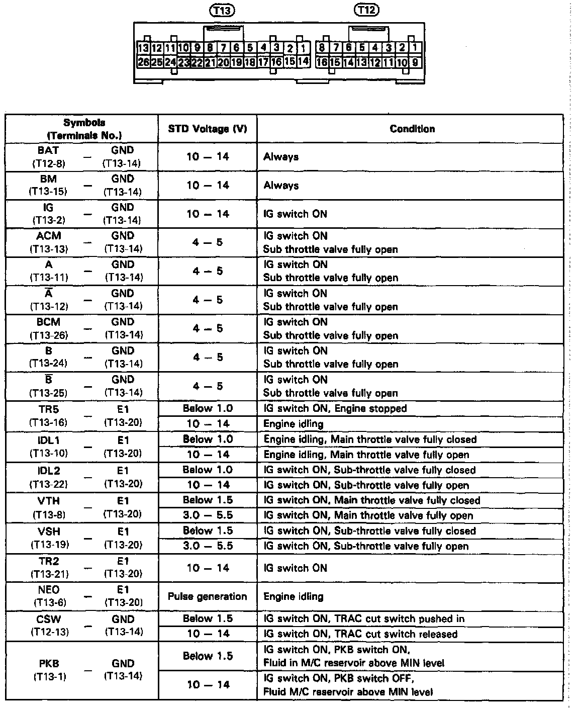 Fig. 49 TRAC ECU Terminal Identification & Values (Part 1 Of 2):