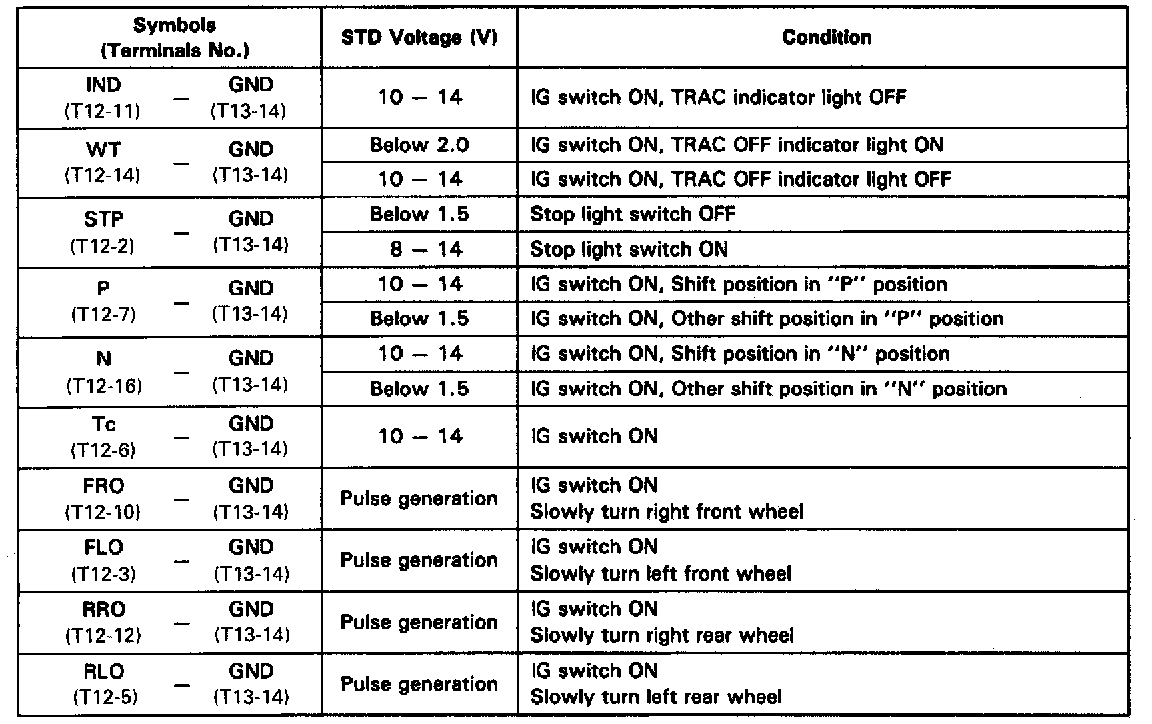 Fig. 49 TRAC ECU Terminal Identification & Values (Part 2 Of 2):