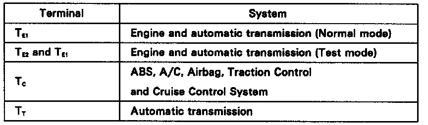 Connecting the following terminals of the DLC2 to terminal E1 selects the diagnosis mode shown