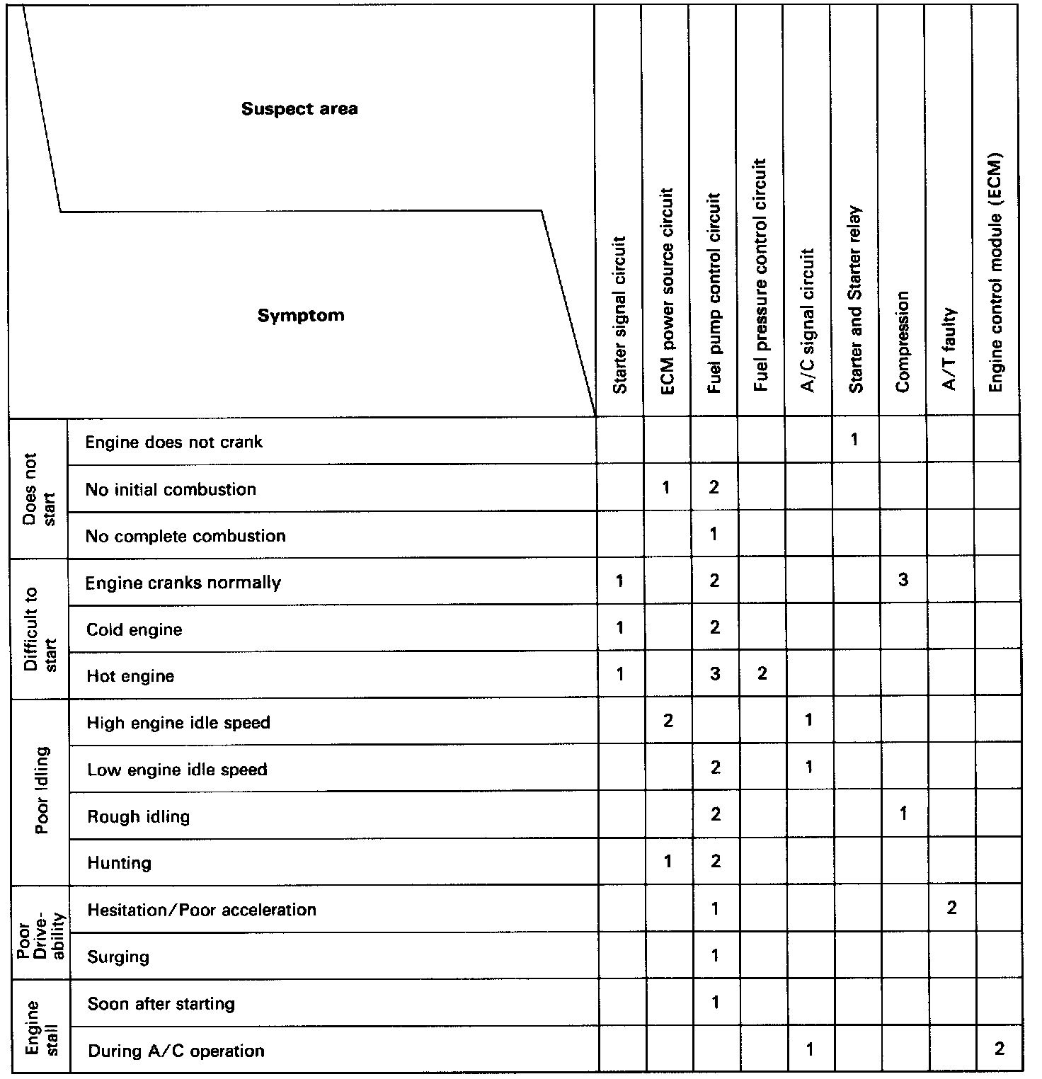 When the malfunction code is not confirmed in the DTC check and the problem still can not be confirmed in the basic inspection, then proceed to this step and perform troubleshooting according to the numbered order given in the table below.