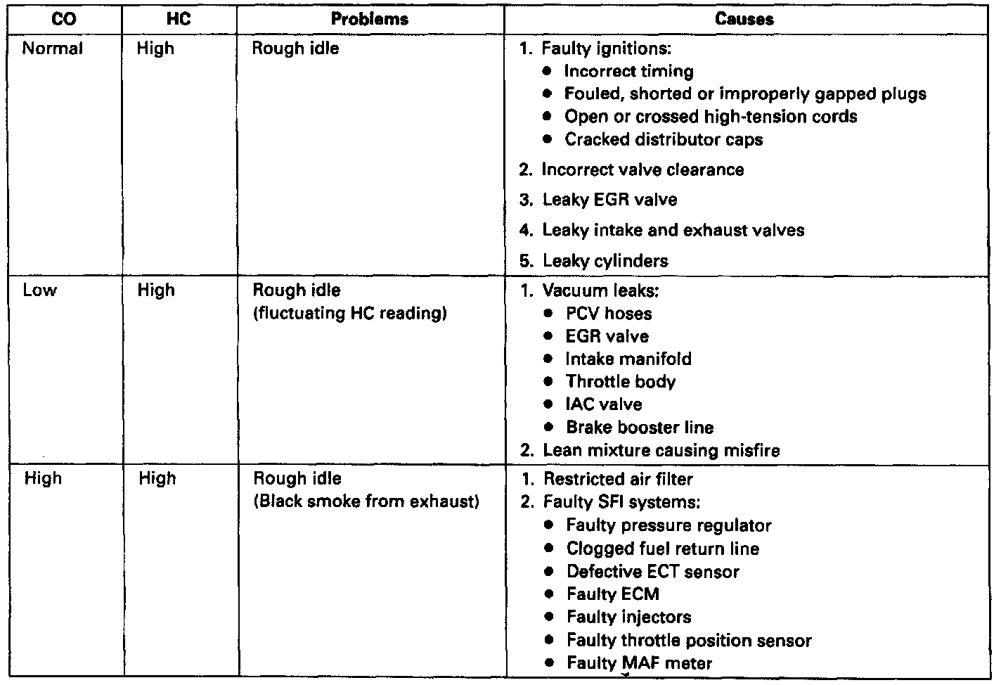 If the CO/HC concentration does not comply with regulations, perform troubleshooting in the order given below.