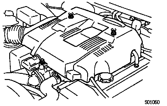- Remove the 2 cap nuts, bolt and V-bank cover.